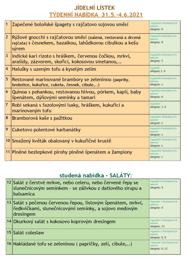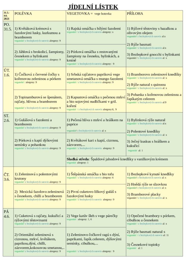JÍDELNÍ LÍSTEK 31.5-4.6.2021