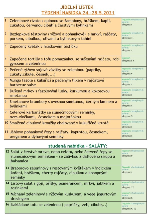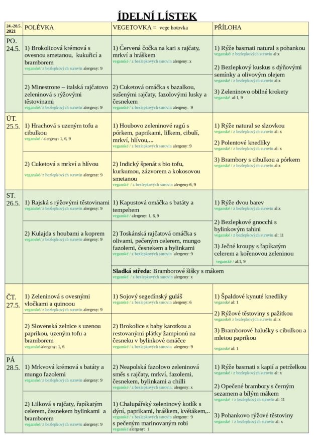 JÍDELNÍ LÍSTEK 24.-28.5. 2021