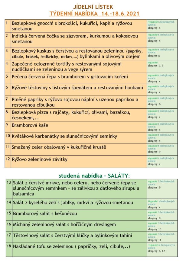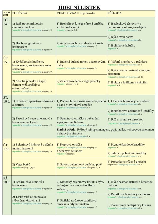 JÍDELNÍ LÍSTEK 14.-18.6. 2021