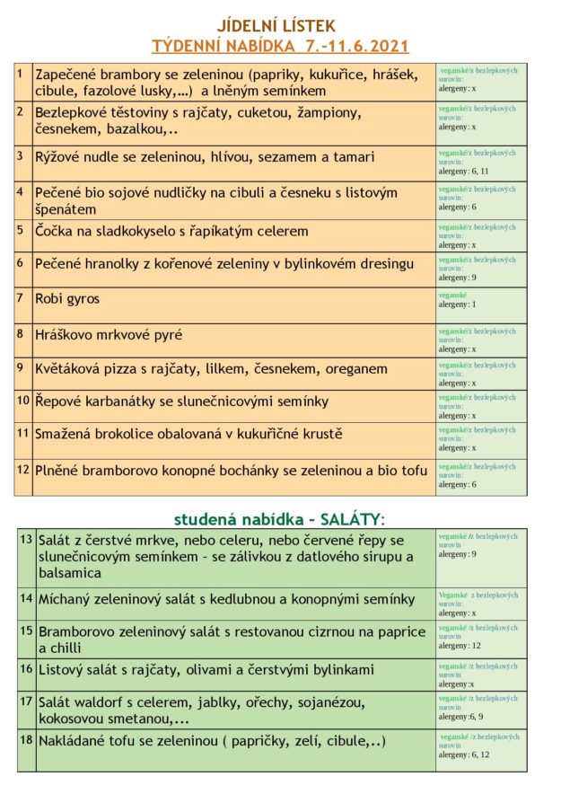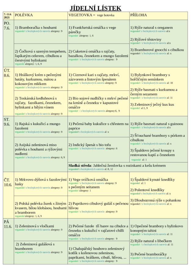 JÍDELNÍ LÍSTEK 7.-11.6 2021