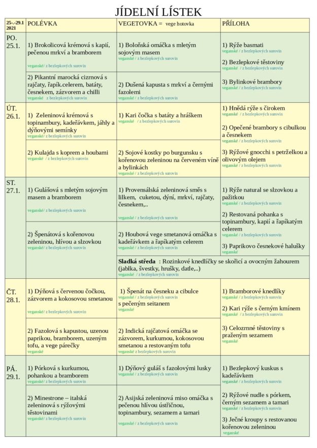 JÍDELNÍ LÍSTEK 25.-29.1. 2021