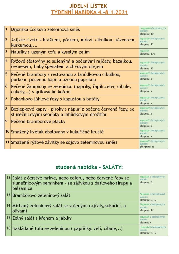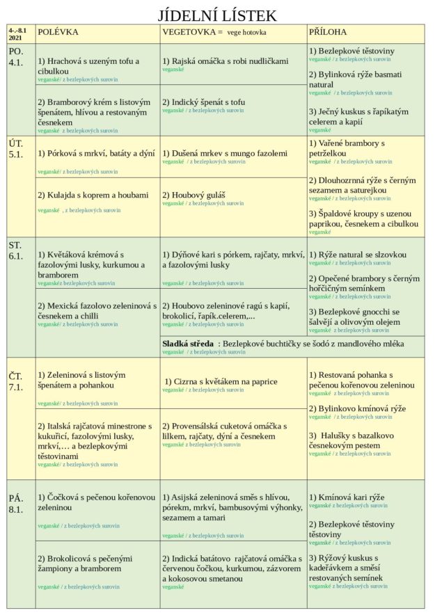 JÍDELNÍ LÍSTEK 4.-8.1. 2021