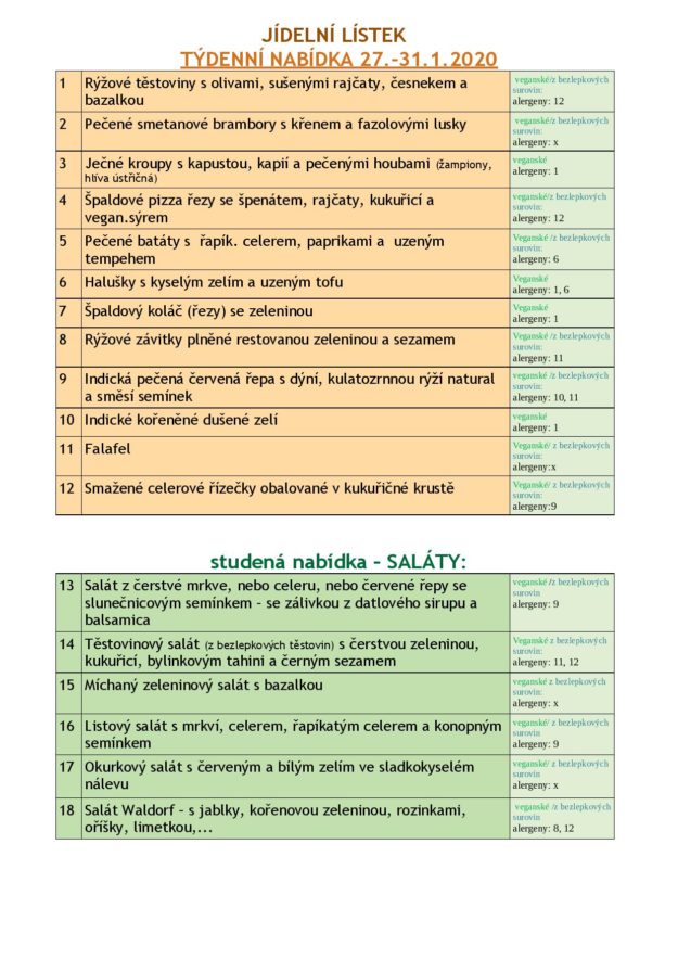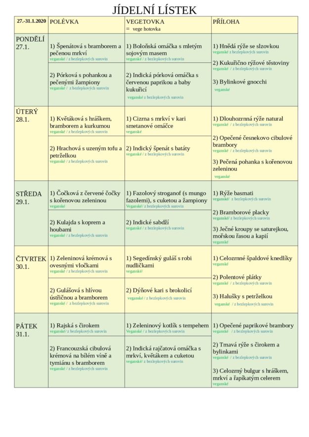 JÍDELNÍ LÍSTEK NA TÝDEN 27.-31.1.2020