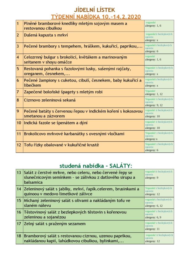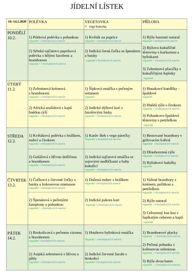 JÍDELNÍ LÍSTEK 10.-14.2. 2020