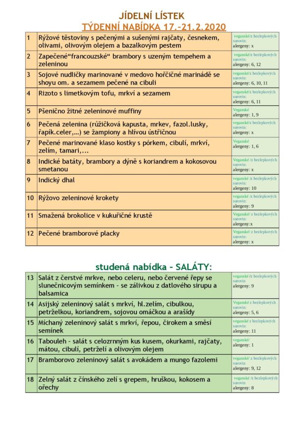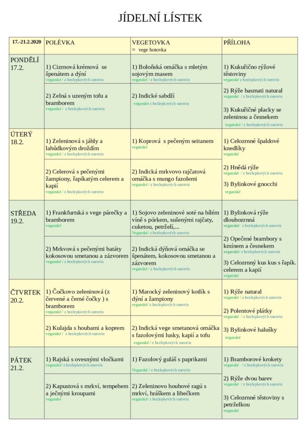 JÍDELNÍ LÍSTEK 17.-21.2. 2020