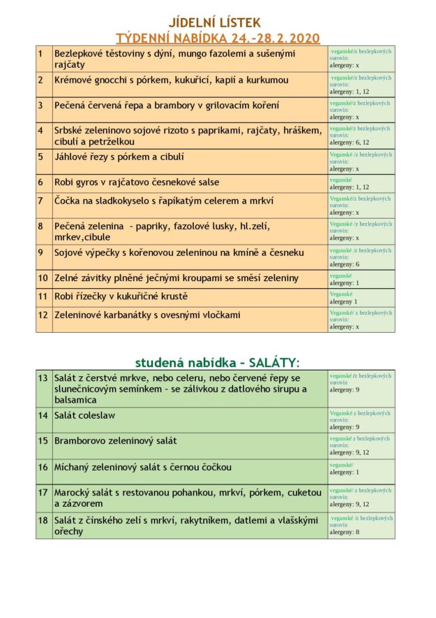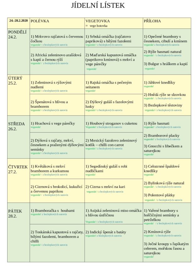 JÍDELNÍ LÍSTEK 24.-28.2. 2020
