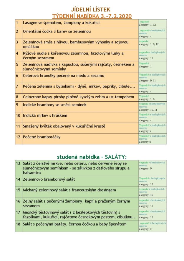 JÍDELNÍ LÍSTEK 3.-7.2.2020