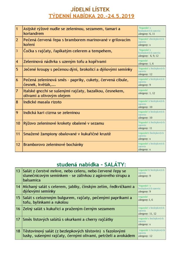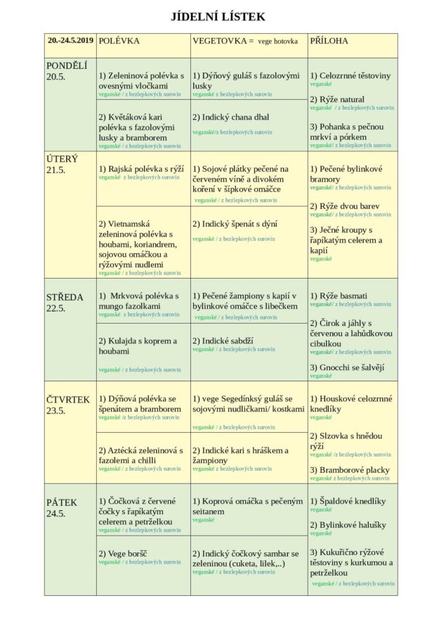 JÍDELNÍ LÍSTEK NA TÝDEN od 20. do 24.5.2019