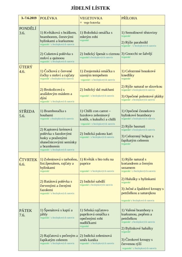 JÍDELNÍ LÍSTEK NA TÝDEN od 3.do7.6.2019