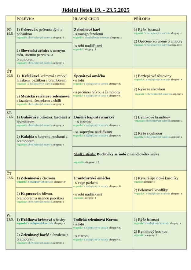 JÍDELNÍ LÍSTEK 19.-23.5. 2025
