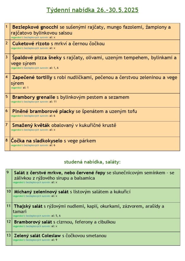 JÍDELNÍ LÍSTEK 26.-30.5. 2025
