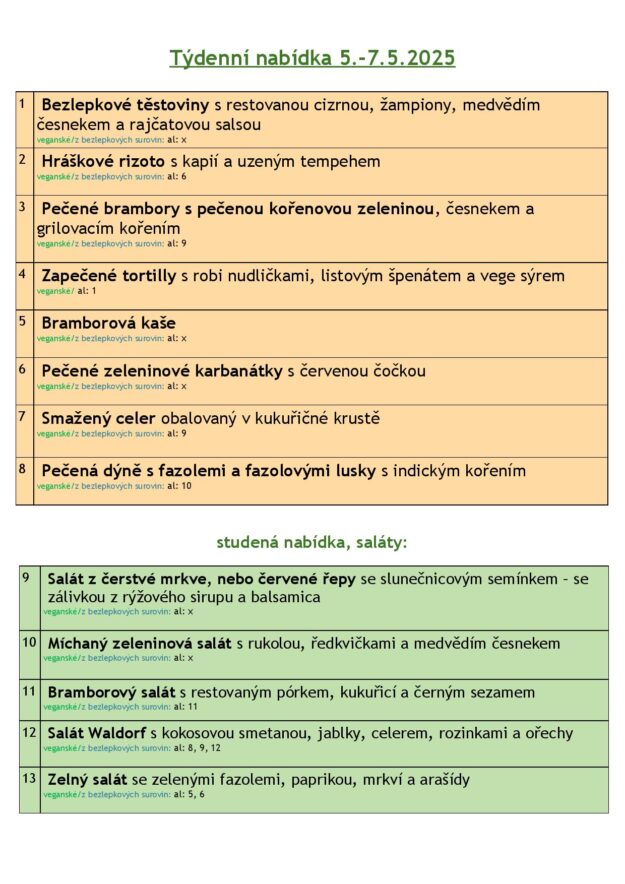 JÍDELNÍ LÍSTEK 5.-9.5. 2025