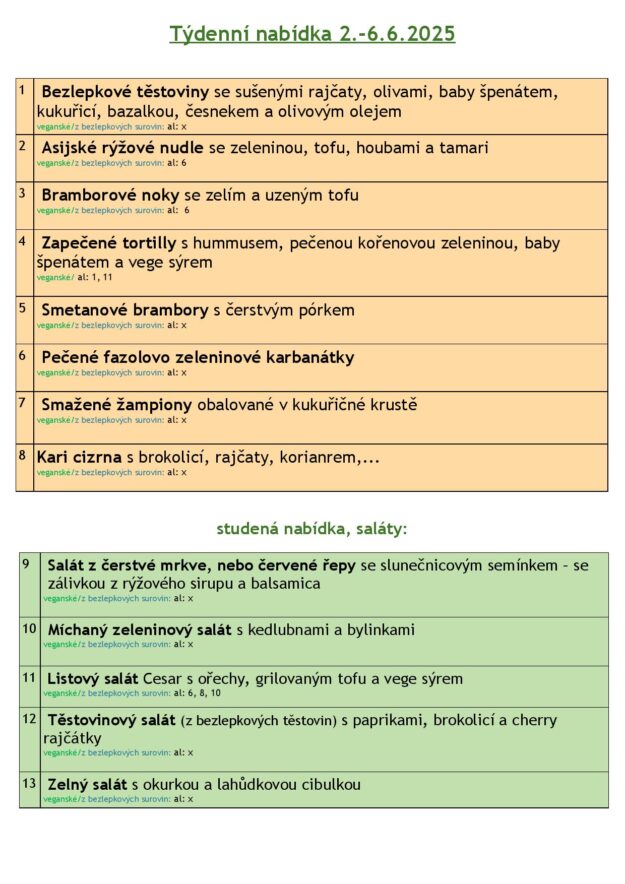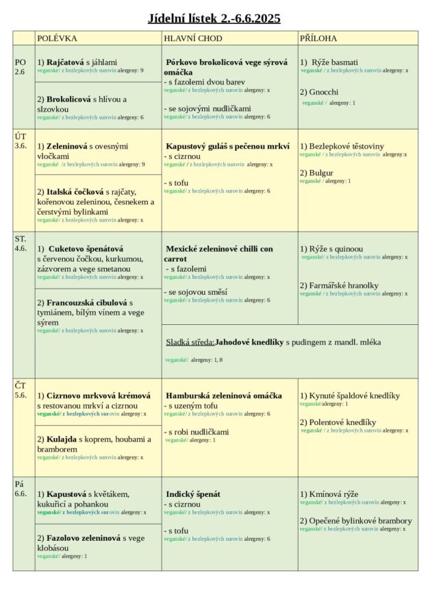 JÍDELNÍ LÍSTEK 2.-6.6. 2025