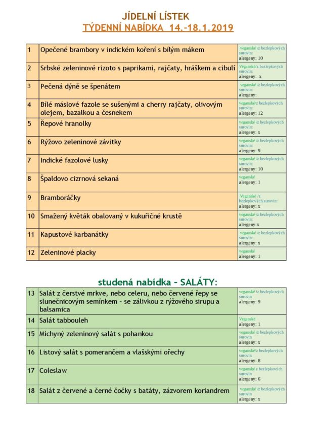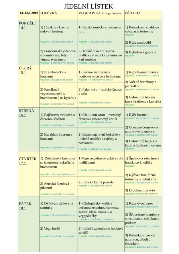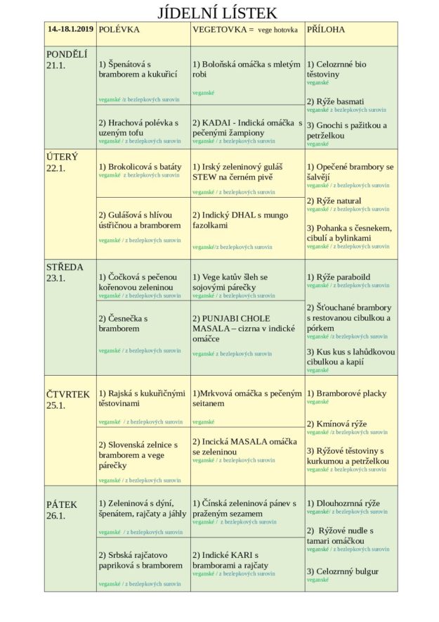 JÍDELNÍ LÍSTEK NA TÝDEN 14.-18.1.2019