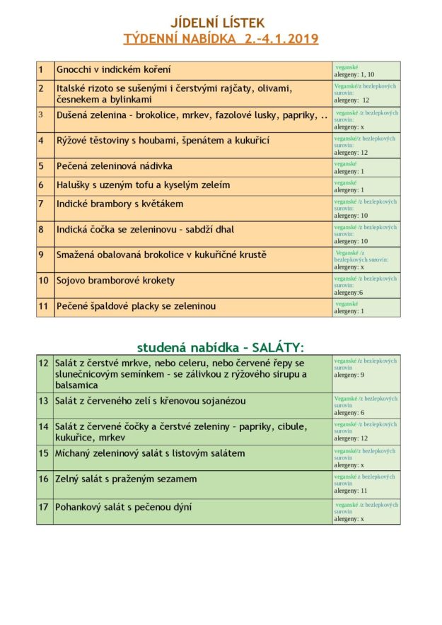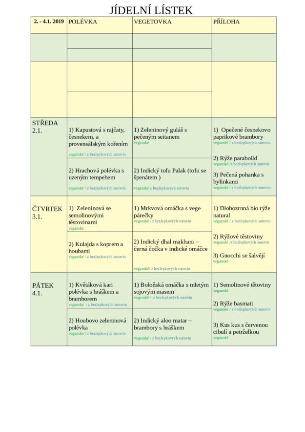 JÍDELNÍ LÍSTEK NA TÝDEN 2.-4.1.2019