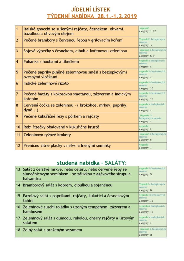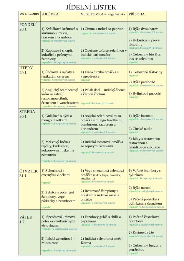JÍDELNÍ LÍSTEK NA TÝDEN od 28.1. do 1.2.2019