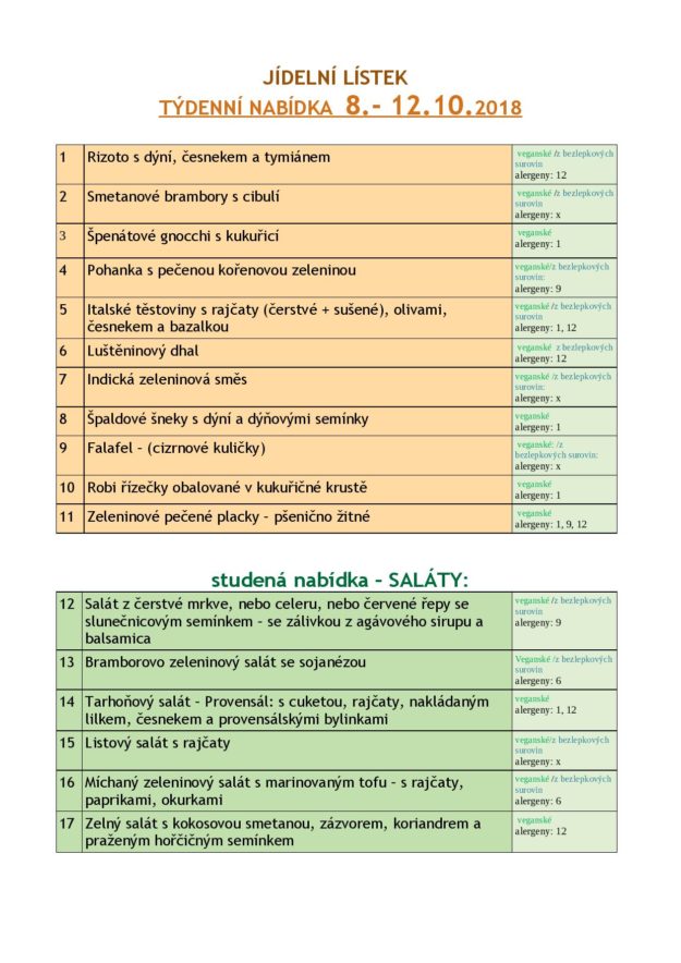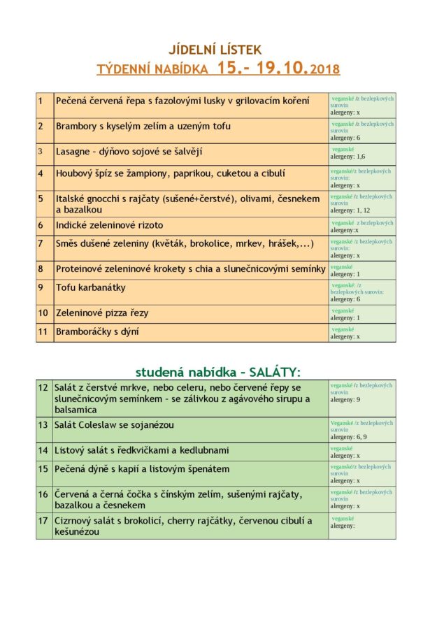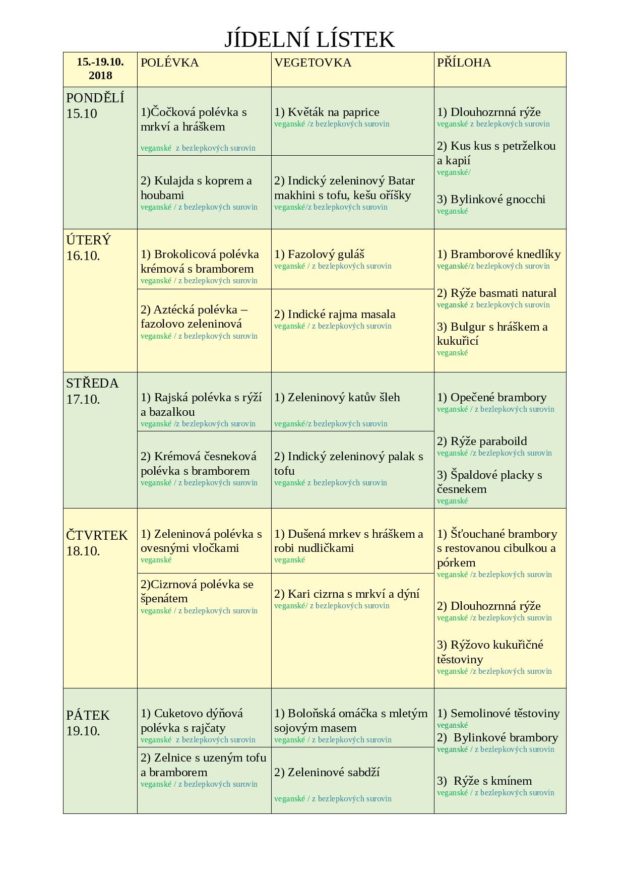 JÍDELNÍ LÍSTEK na týden 15.-19.10.2018