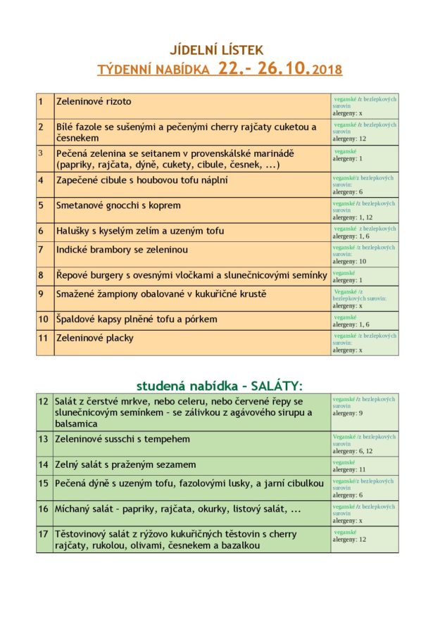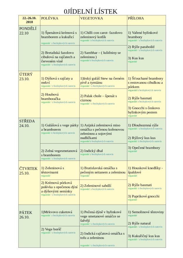 JÍDELNÍ LÍSTEK 22.-26.10.2018