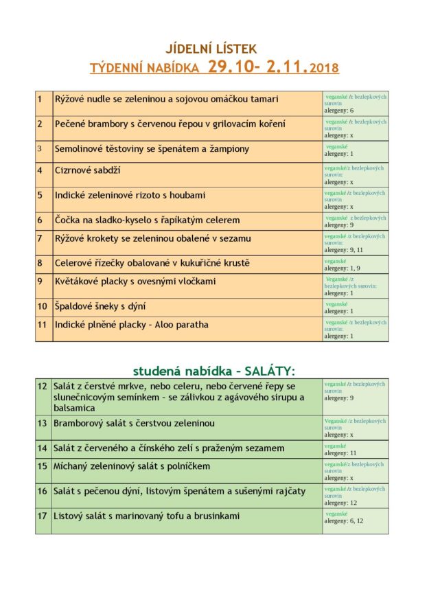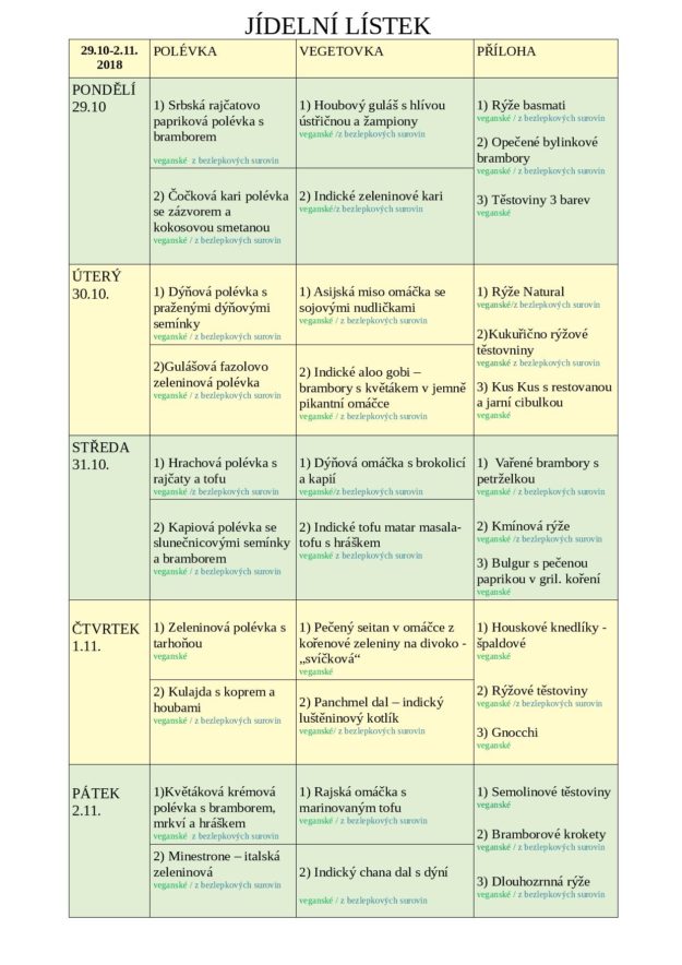 JÍDELNÍ LÍSETEK na týden od 29.10 do 2.11.2018