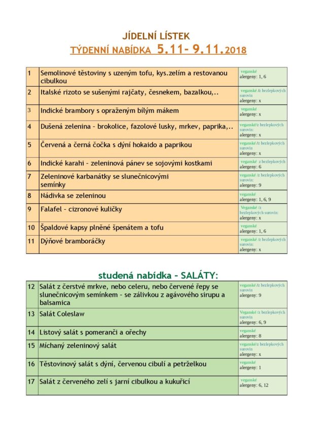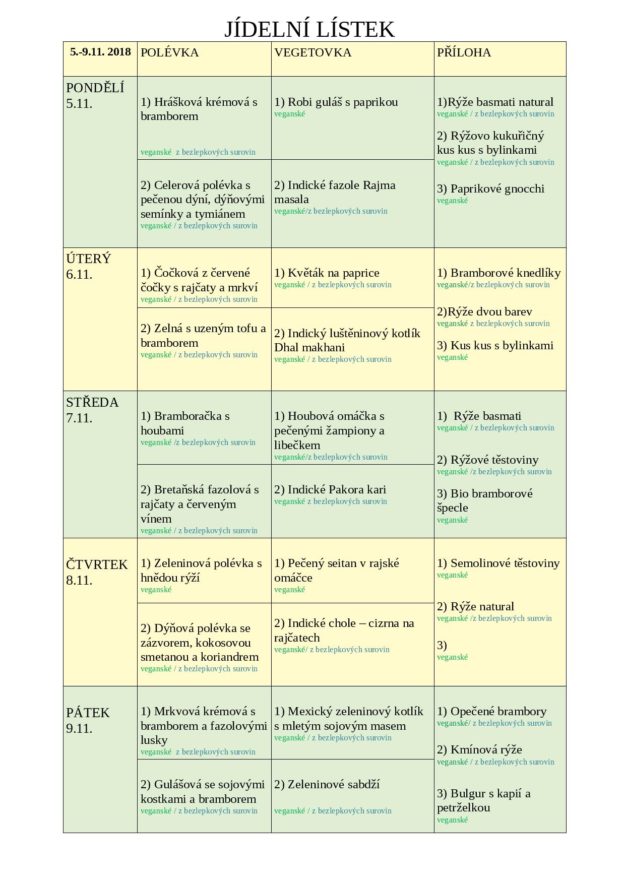 JÍDELNÍ LÍSTEK NA TÝDEN od 5. do 9.11.2018