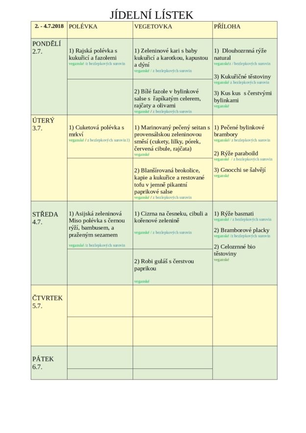 JÍDELNÍ LÍSTEK NA TÝDEN od 2. do 4.7.2018