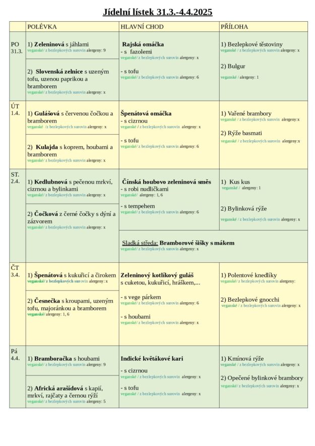 JÍDELNÍ LÍSTEK 31.3.-4.4. 2025