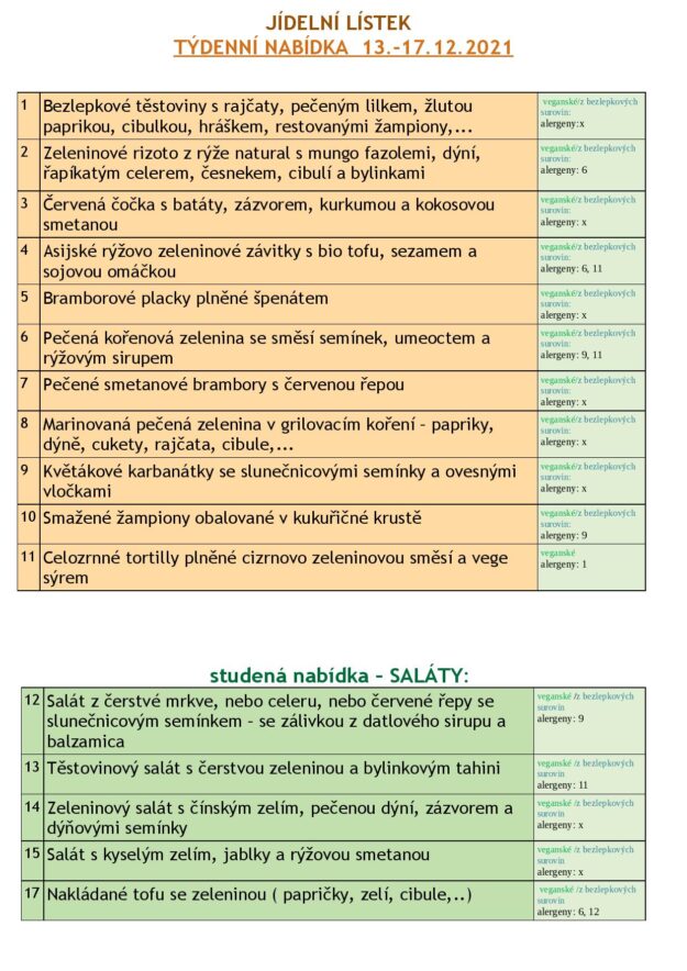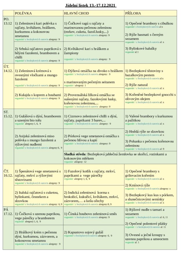 JÍDELNÍ LÍSTEK 13.-17.12. 2021