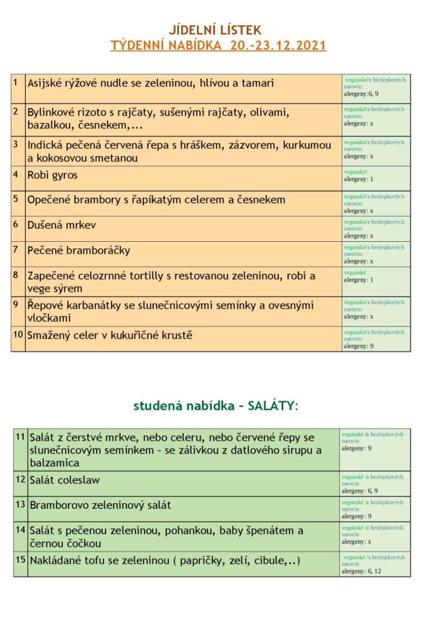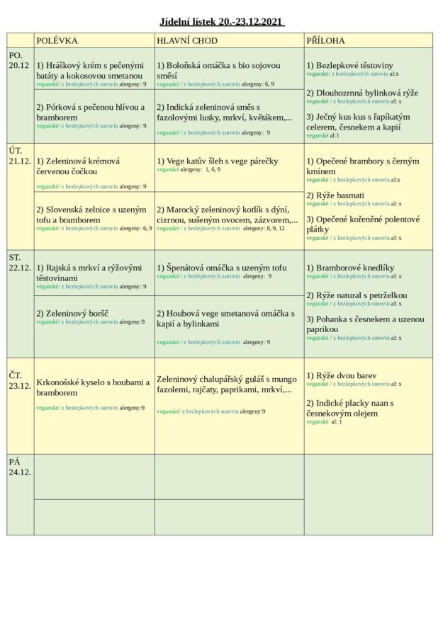 JÍDELNÍ LÍSTEK 20.-23.12. 2021