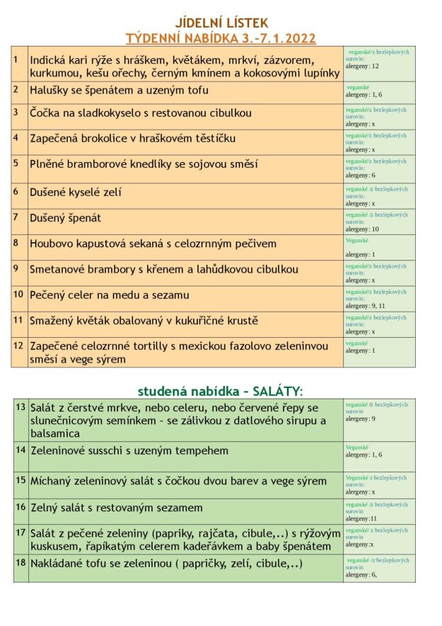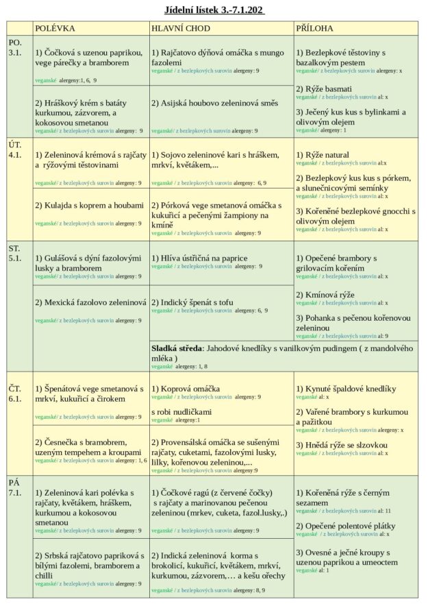 JÍDELNÍ LÍSTEK 3.-7.1. 2022