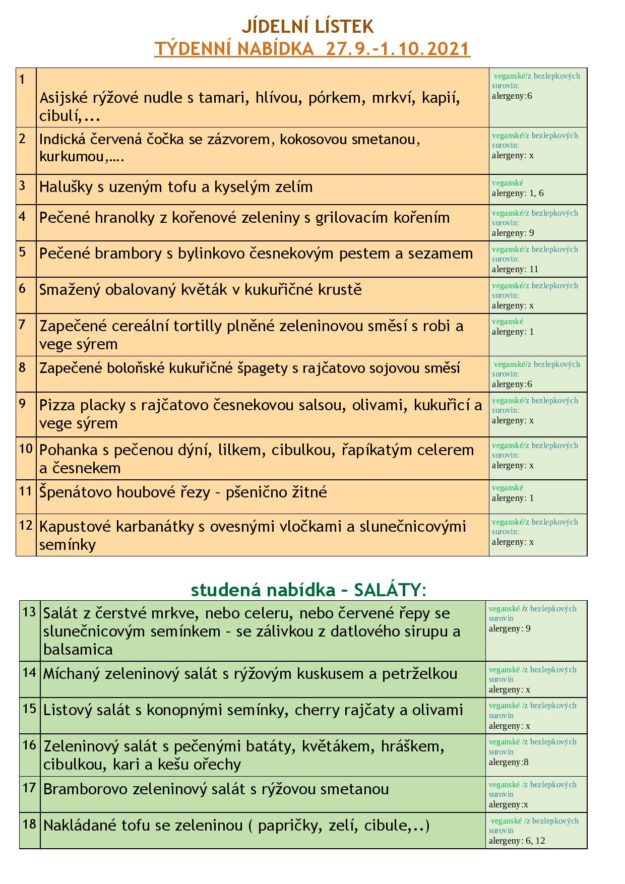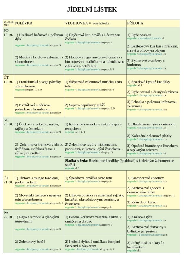 JÍDELNÍ LÍSTEK 18.-22-10. 2021