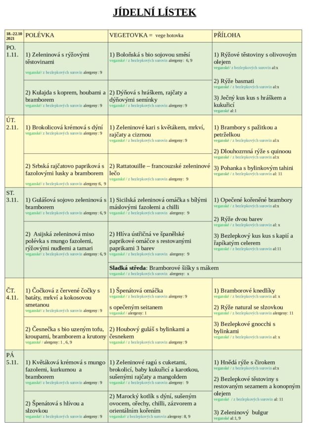 JÍDELNÍ LÍSTEK 1.-5.11 2021