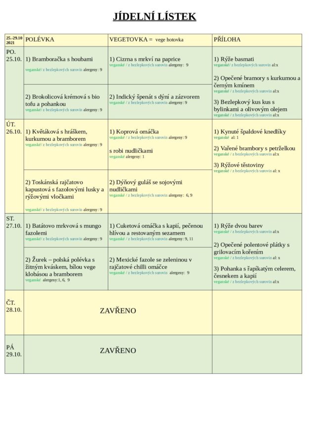 JÍDELNÍ LÍSTEK 25.-29.10 2021