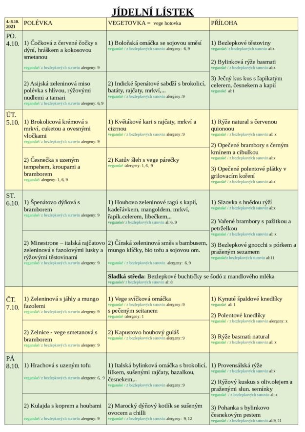 JÍDELNÍ LÍSTEK 4.-8.10. 2021