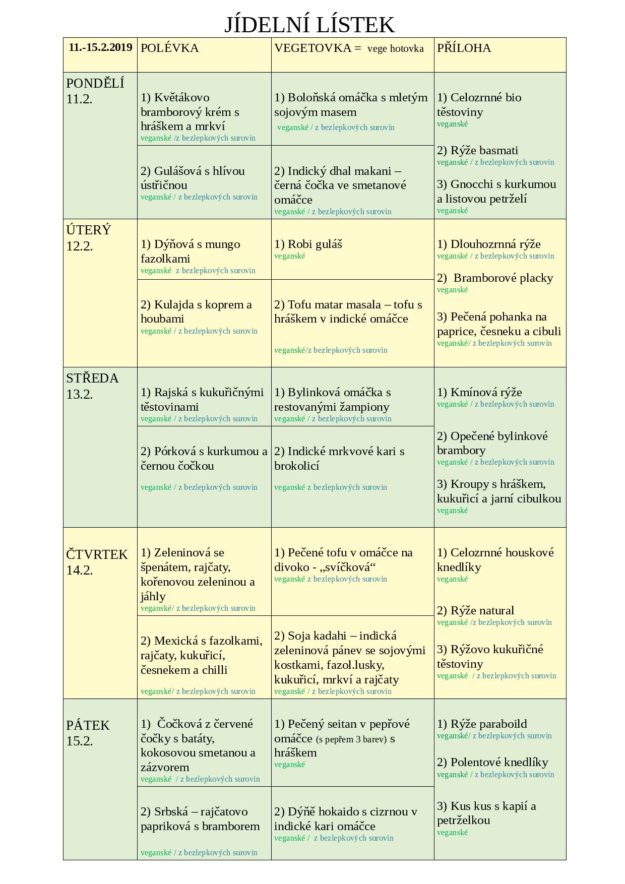 JÍDELNÍ LÍSTK NA TÝDEN od 11. do 15.2.2019