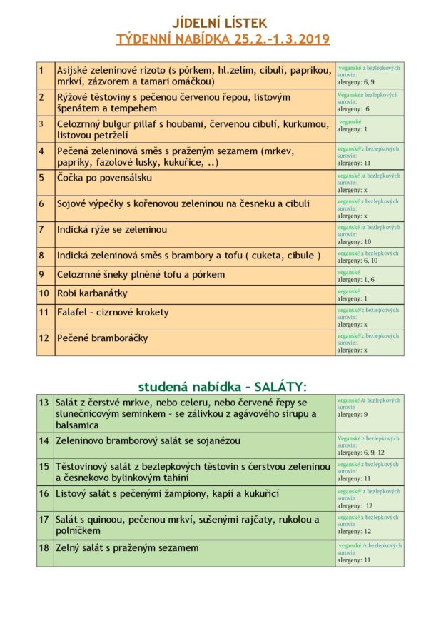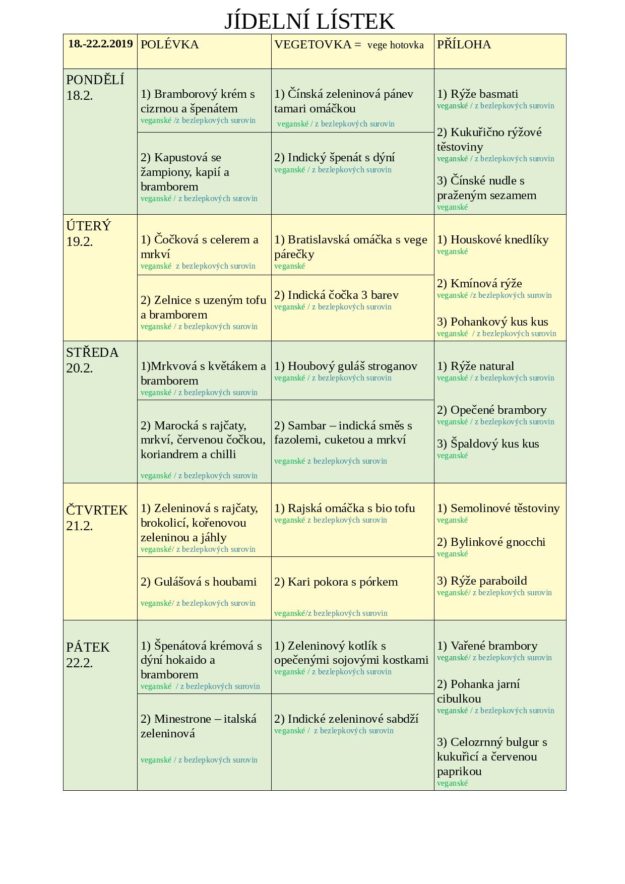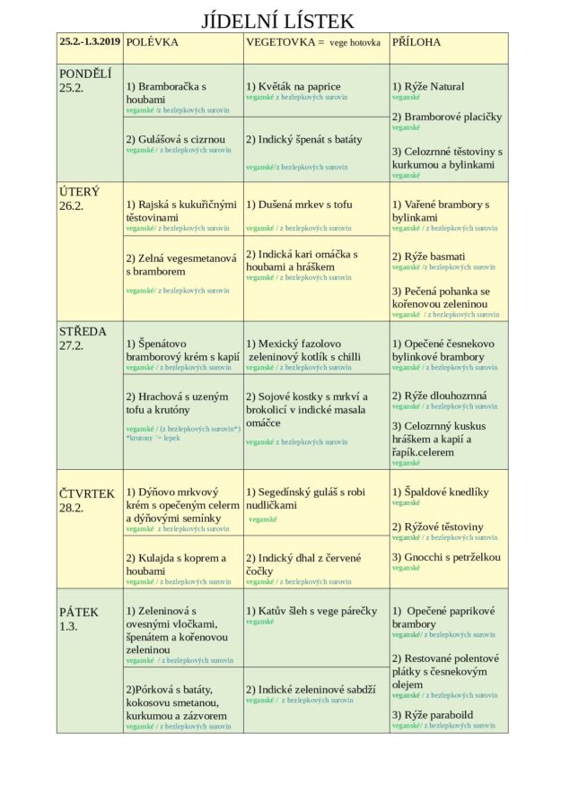 JÍDELNÍ LÍSTEK NA TÝDEN od 25.2. do 1.3.2019