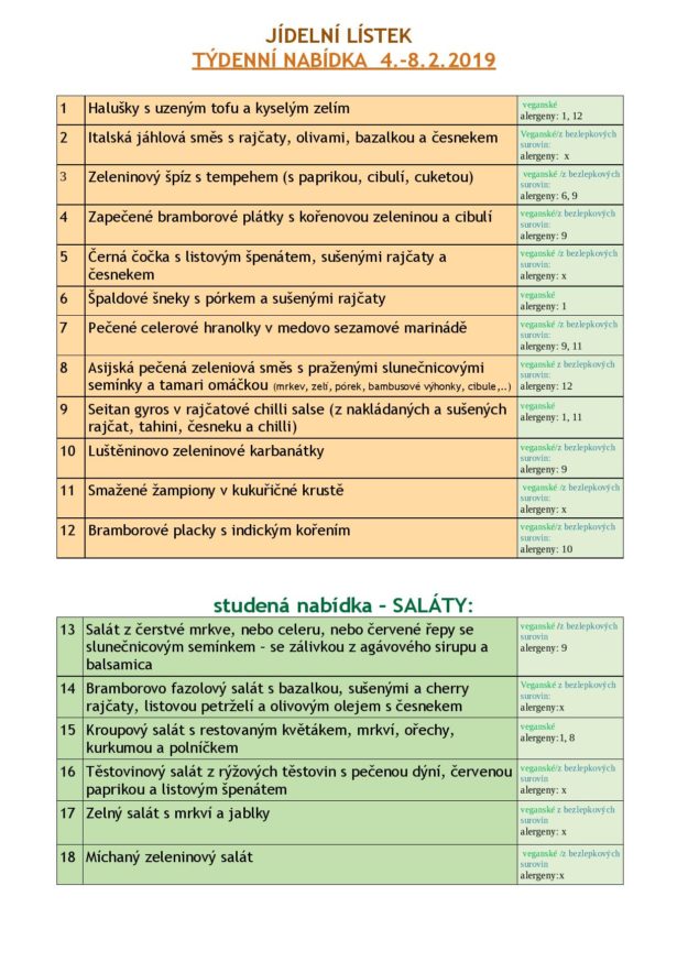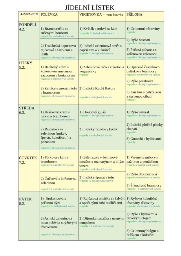 JÍDELNÍ LÍSTEK NA TÝDEN od 4. do 8.2.