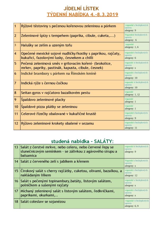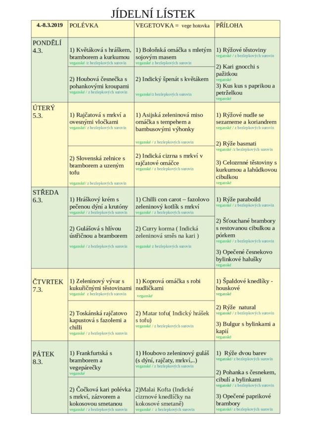 JÍDELNÍ LÍSTEK NA TÝDEN od 4. do 8.3.2019