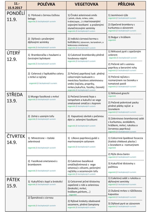 JÍDELNÍ LÍSTEK NA TÝDEN od 11. do 15.9.2017