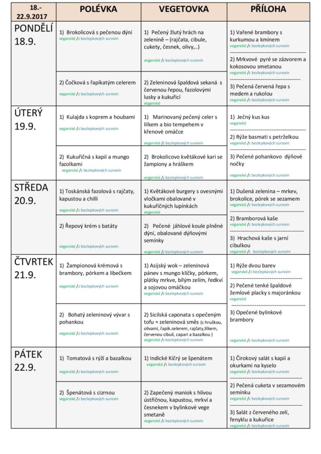 JÍDELNÍ LÍSTEK NA TÝDEN od 18. do 22.9.2017