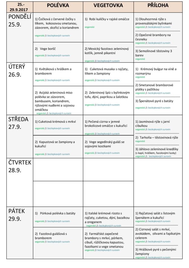 JÍDELNÍ LÍSTEK NA TÝDEN od 25. do 30.9.2017