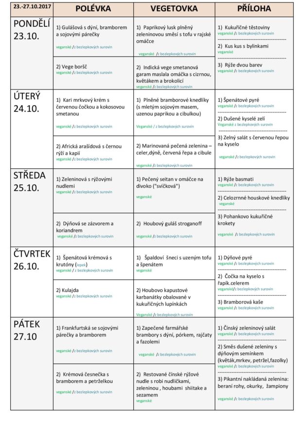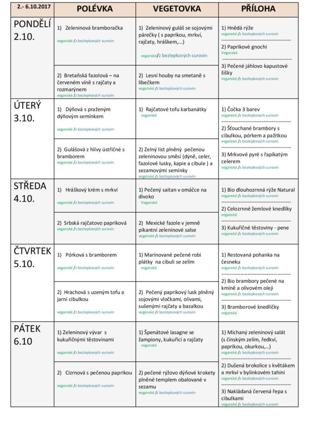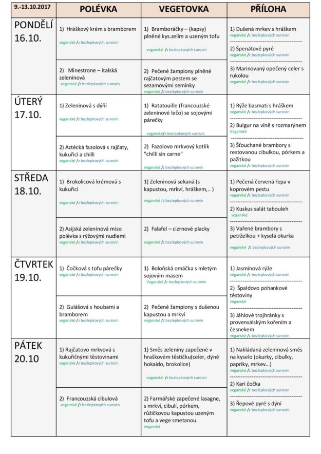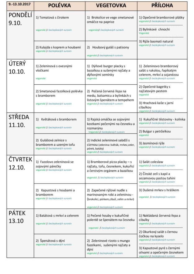 JÍDELNÍ LÍSTEK NA TÝDEN od 9. do 13.10.2017