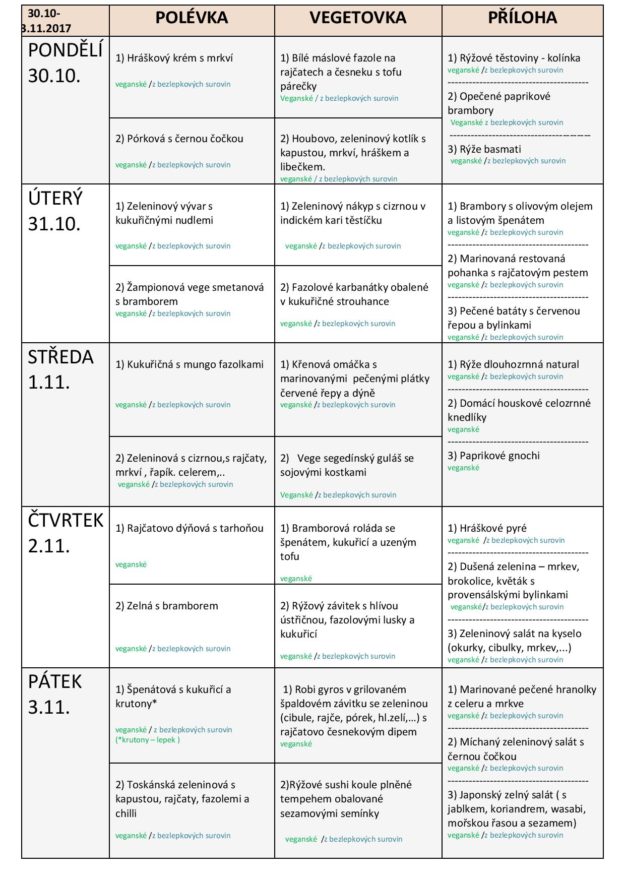 JÍDELNÍ LÍSTEK NA TÝDEN od 30.10.do 31.11.2017