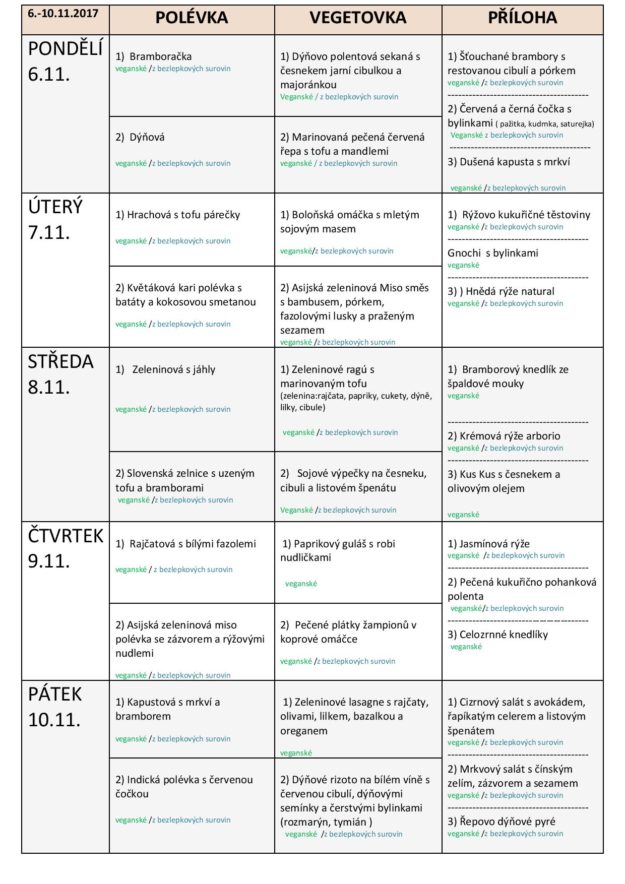 JÍDELNÍ LÍSTEK NA TÝDEN od 6.11 do 10.11.2017