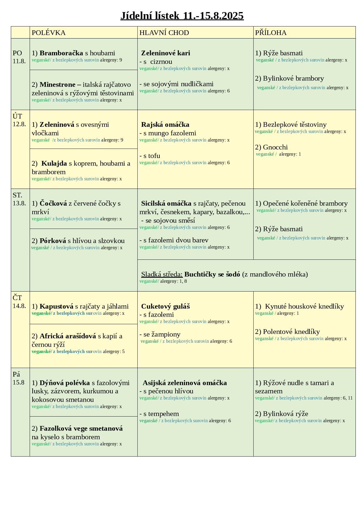 JÍDELNÍ LÍSTEK 11.-15.8. 2025