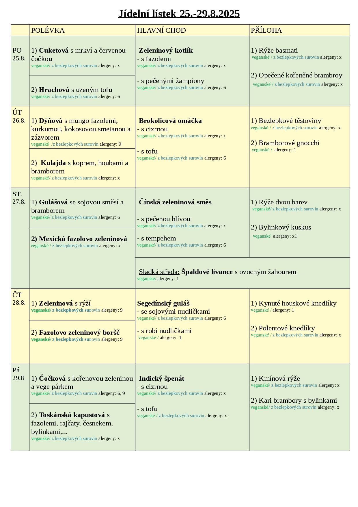 JÍDELNÍ LÍSTEK 25.-29.8.2025