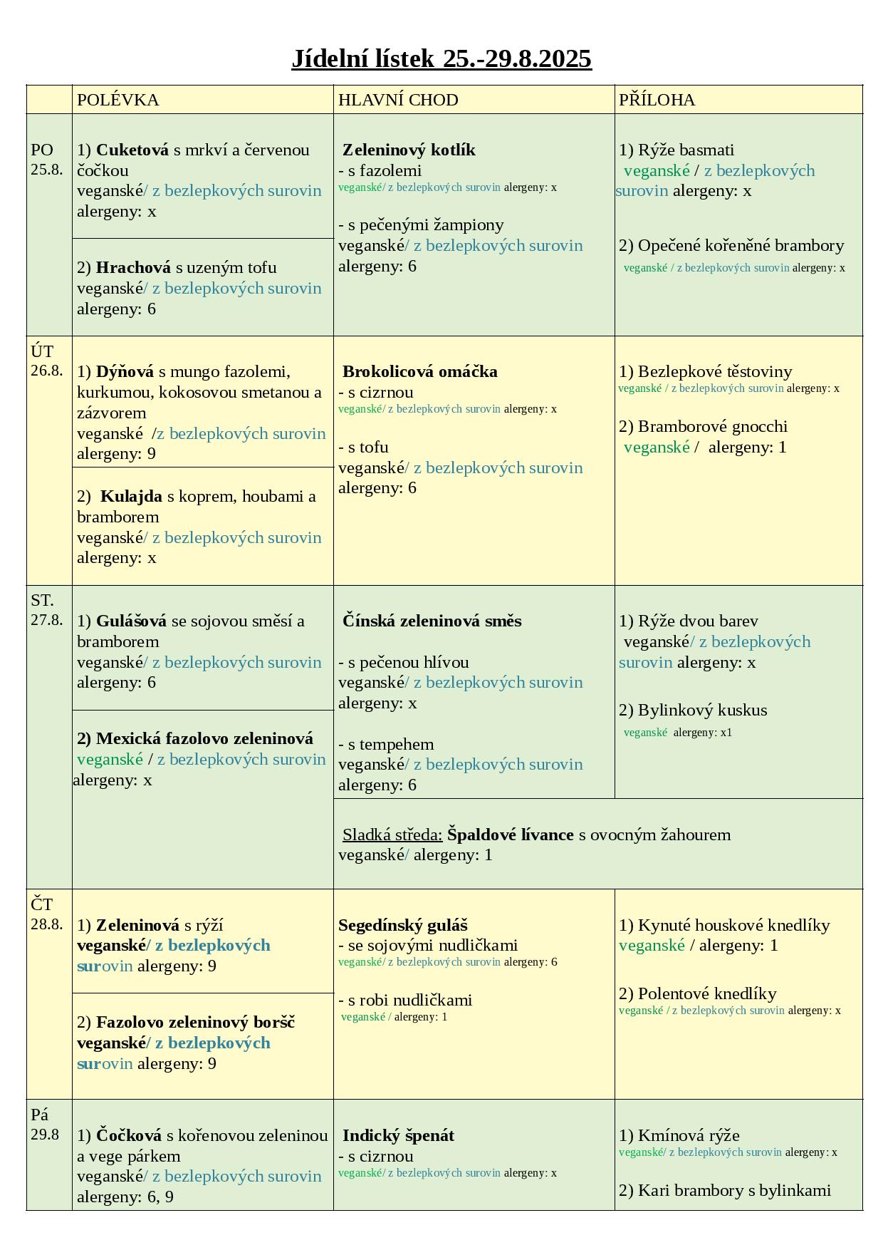 JÍDELNÍ LÍSTEK 25.-29.8. 2025