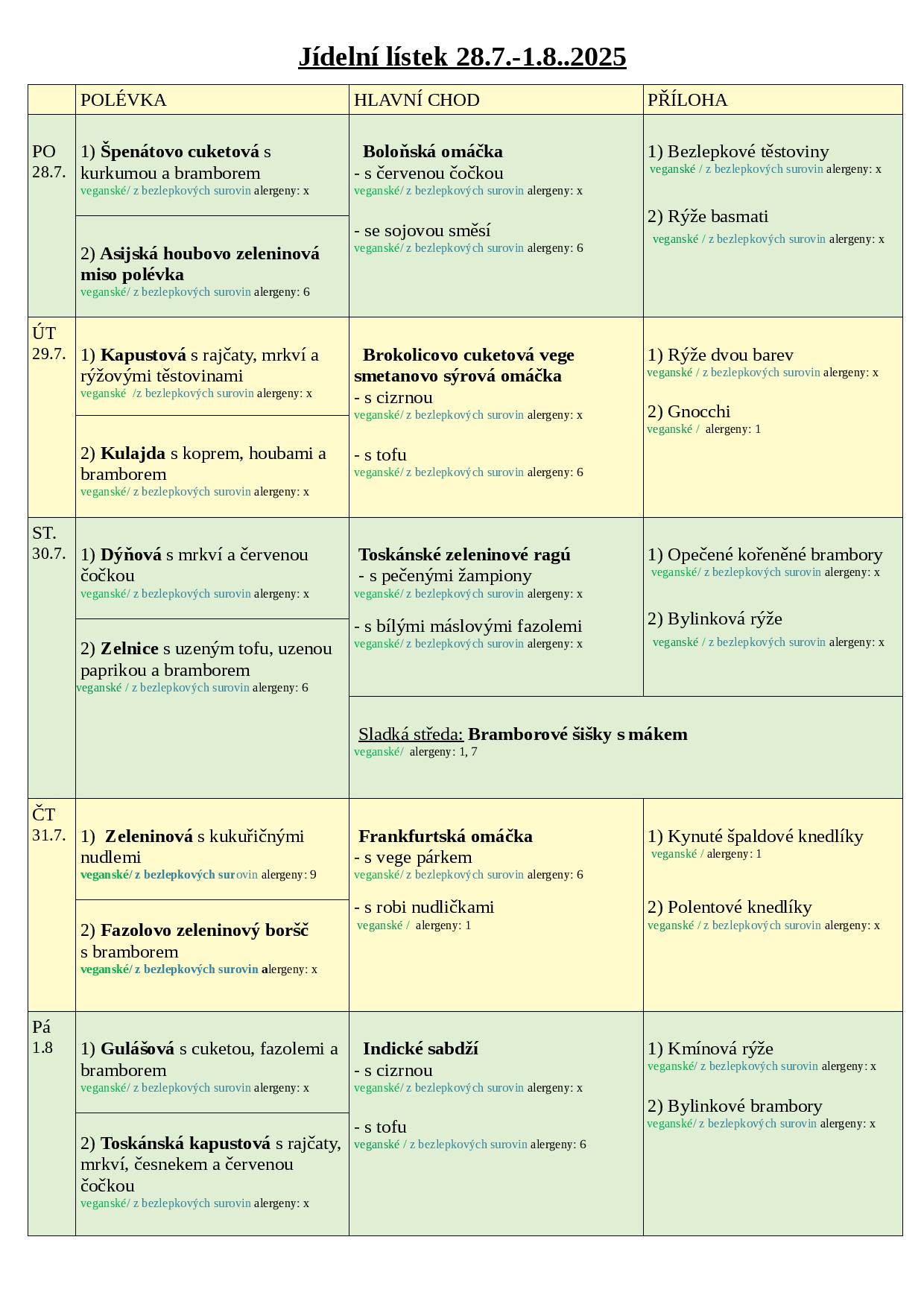 JÍDELNÍ LÍSTEK 28.7.- 1.8. 2025