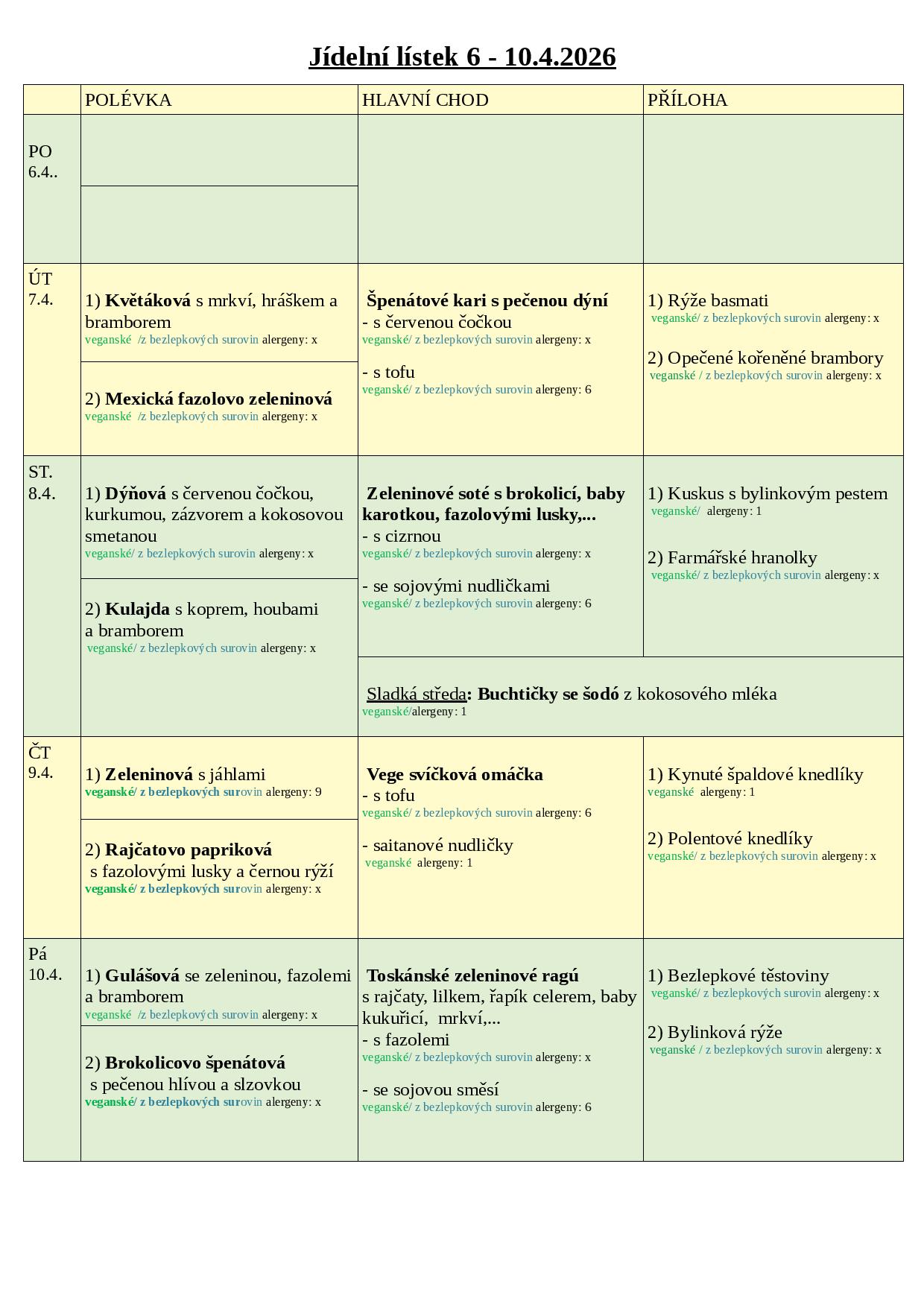 JÍDELNÍ LÍSTEK 6.-10.4. 2026