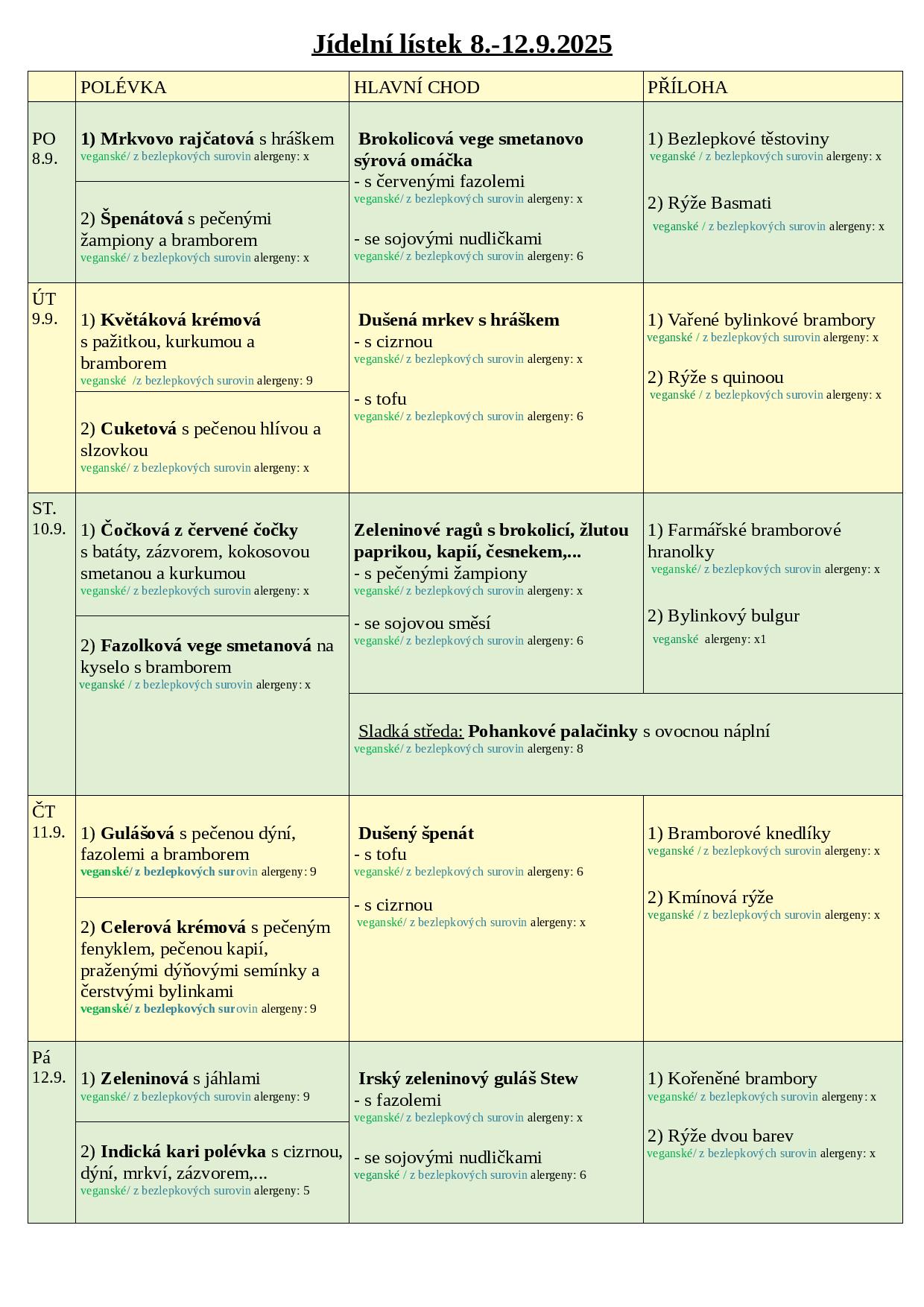 JÍDELNÍ LÍSTEK 8.-12.9. 2025