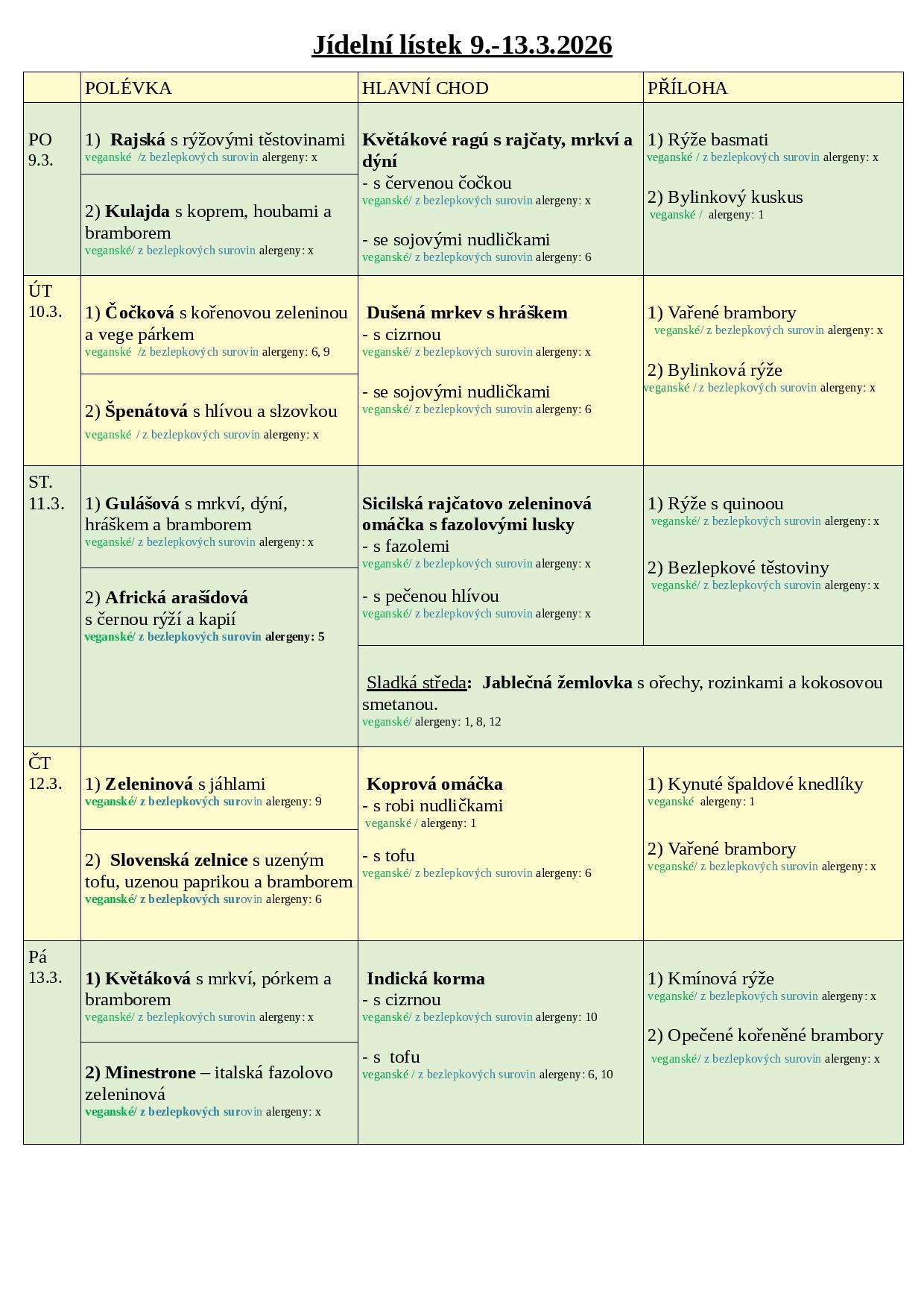 JÍDELNÍ LÍSTEK 9.-13.3. 2026